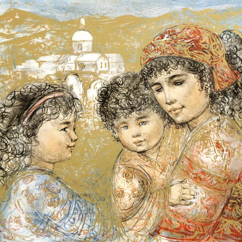 "Zalina with Aries and Ande" LE 35x25 Lithograph by Edna Hibel (Artova)