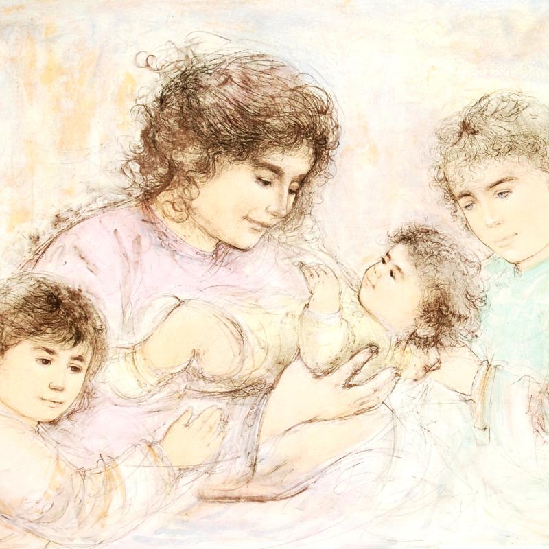 "Marilyn and Children" LE 41x30 Lithograph by Edna Hibel (Artova)