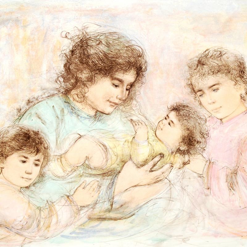 "Marilyn and Children" LE 41x30 Lithograph by Edna Hibel (Artova)