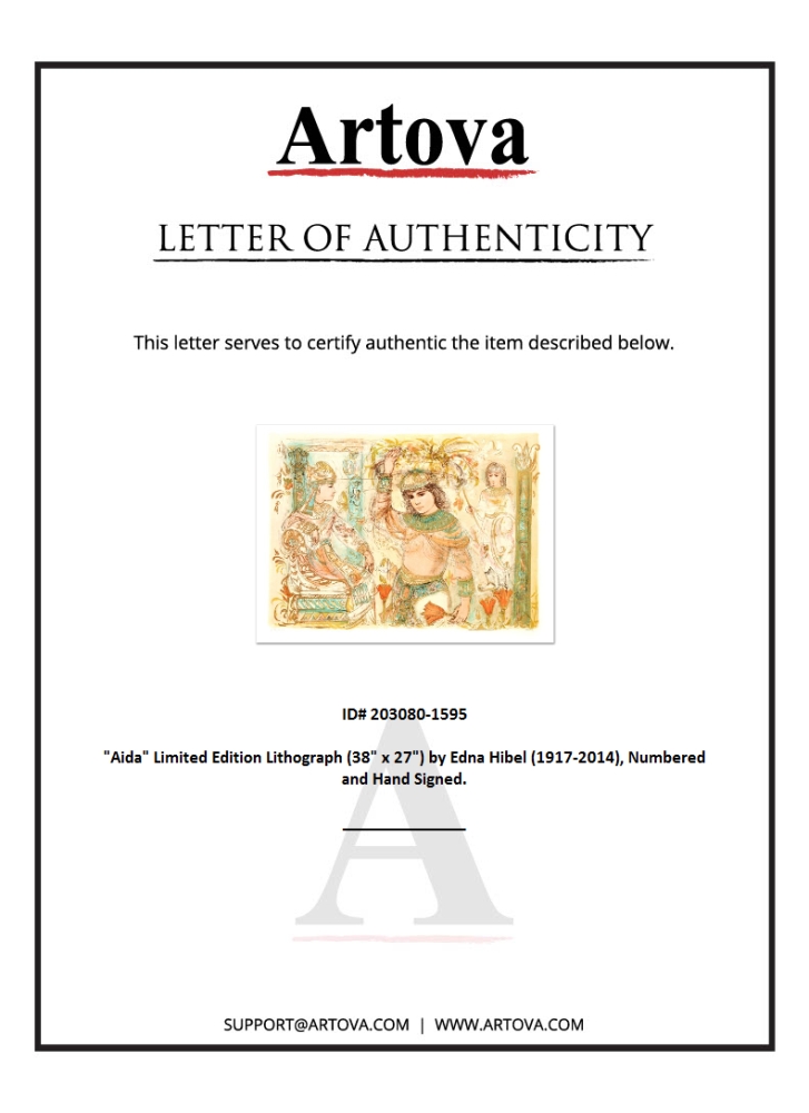 "Aida" LE 42x30 Lithograph by Edna Hibel (Artova)
