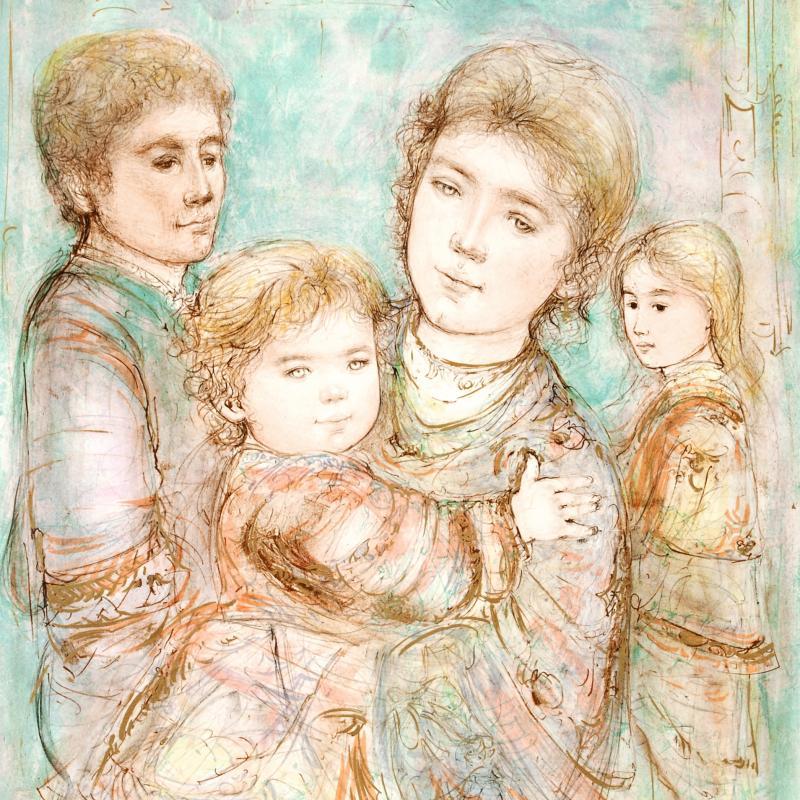 "Portrait of a Family" LE 31x44 Lithograph on Paper by Edna Hibel (Artova)