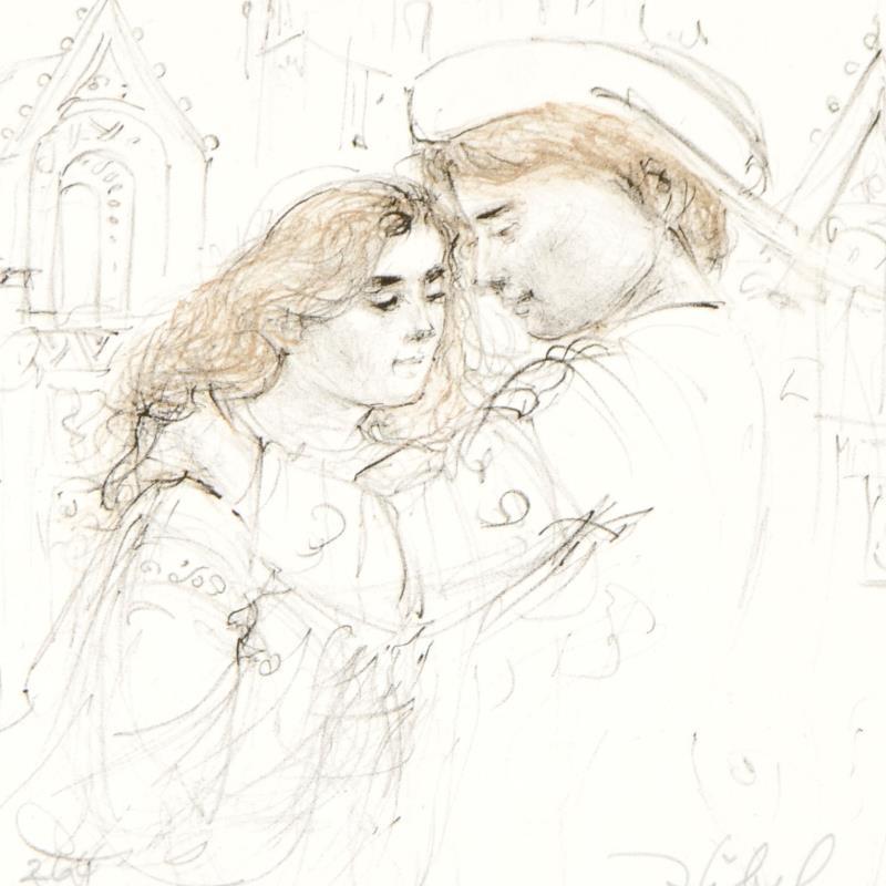 "Roberta and Roberto" LE 5x8 Lithograph with Remarque by Edna Hibel (Artova)