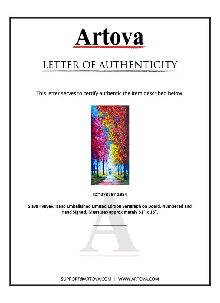 This is a hand embellished limited edition serigraph on board by Slava Ilyayev, numbered inverso hand signed by the artist. Includes Letter of Authenticity. Measures approx. 31" x 15" (image).