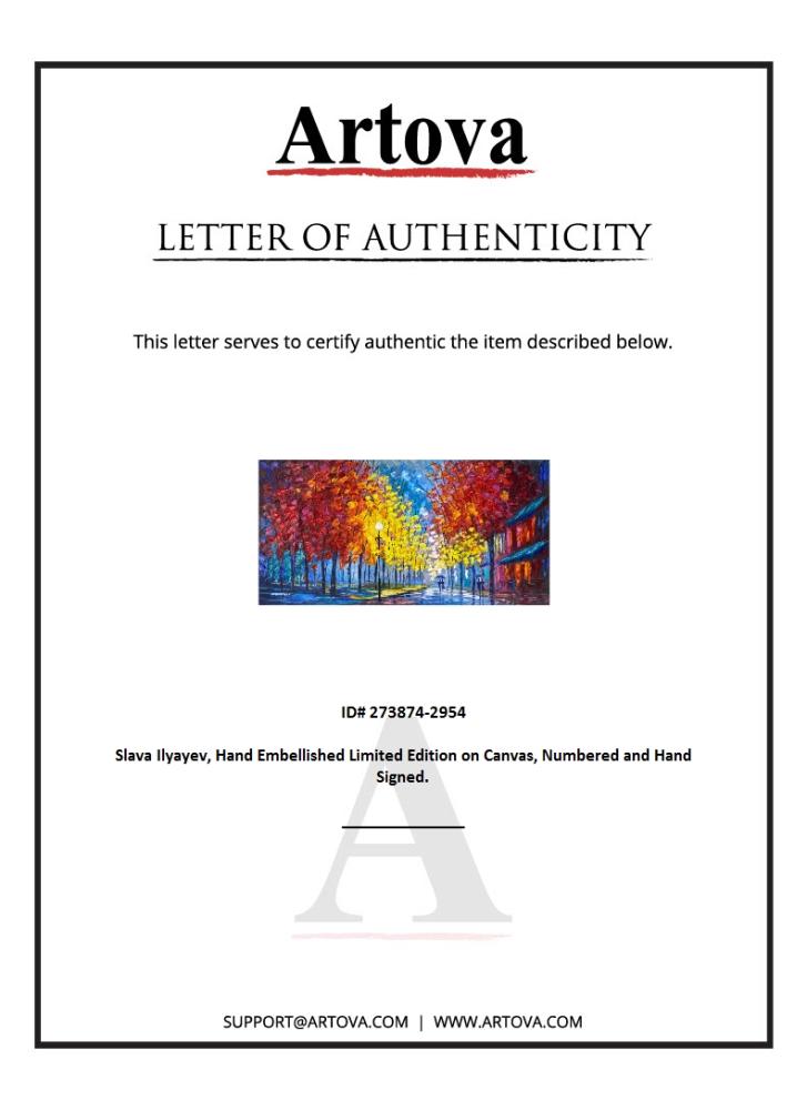 This is a hand embellished limited edition giclee on canvas by Slava Ilyayev, numbered inverso hand signed by the artist. Includes Letter of Authenticity. Measures approx. 24" x 48" (image).