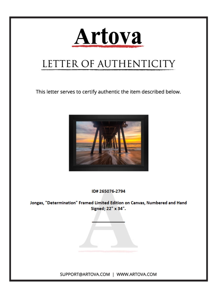 "Determination" is a limited edition giclee on canvas by photographer Jongas, numbered and hand signed by the artist. The piece comes custom framed and includes Letter of Authenticity. Measures approximately 30" x 42" (framed); 22" x 34" (image).