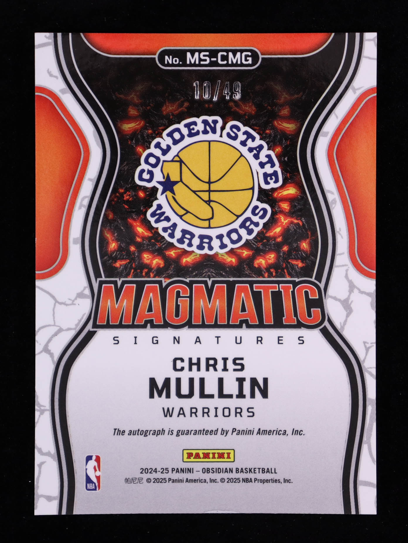 Chris Mullin 2024-25 Panini Obsidian Magmatic Signatures Electric Etch Purple Flood #15 #10/49