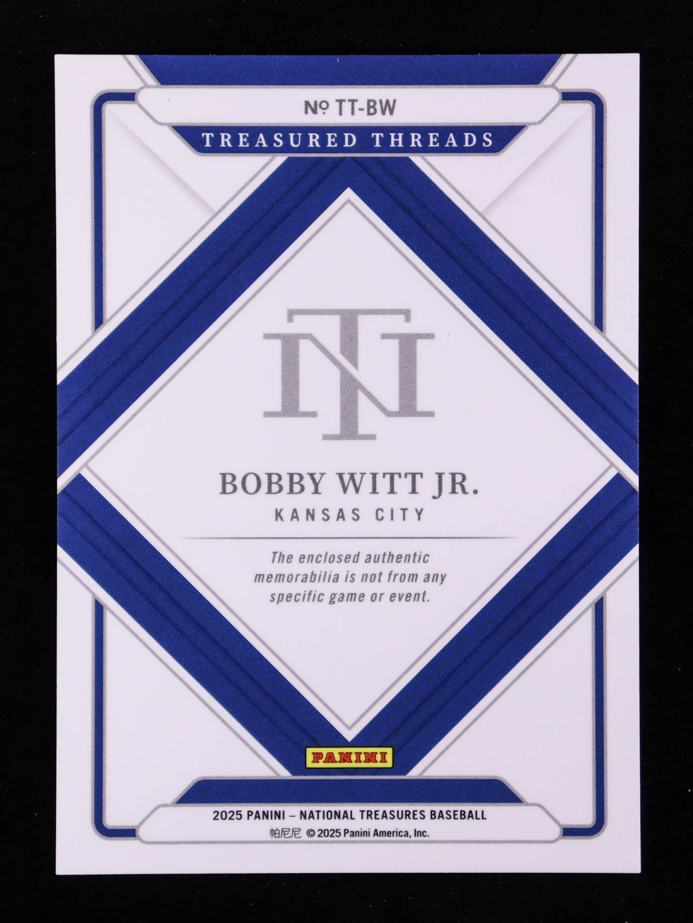 Bobby Witt Jr. 2025 Panini National Treasures Treasured Threads #25 #83/99
