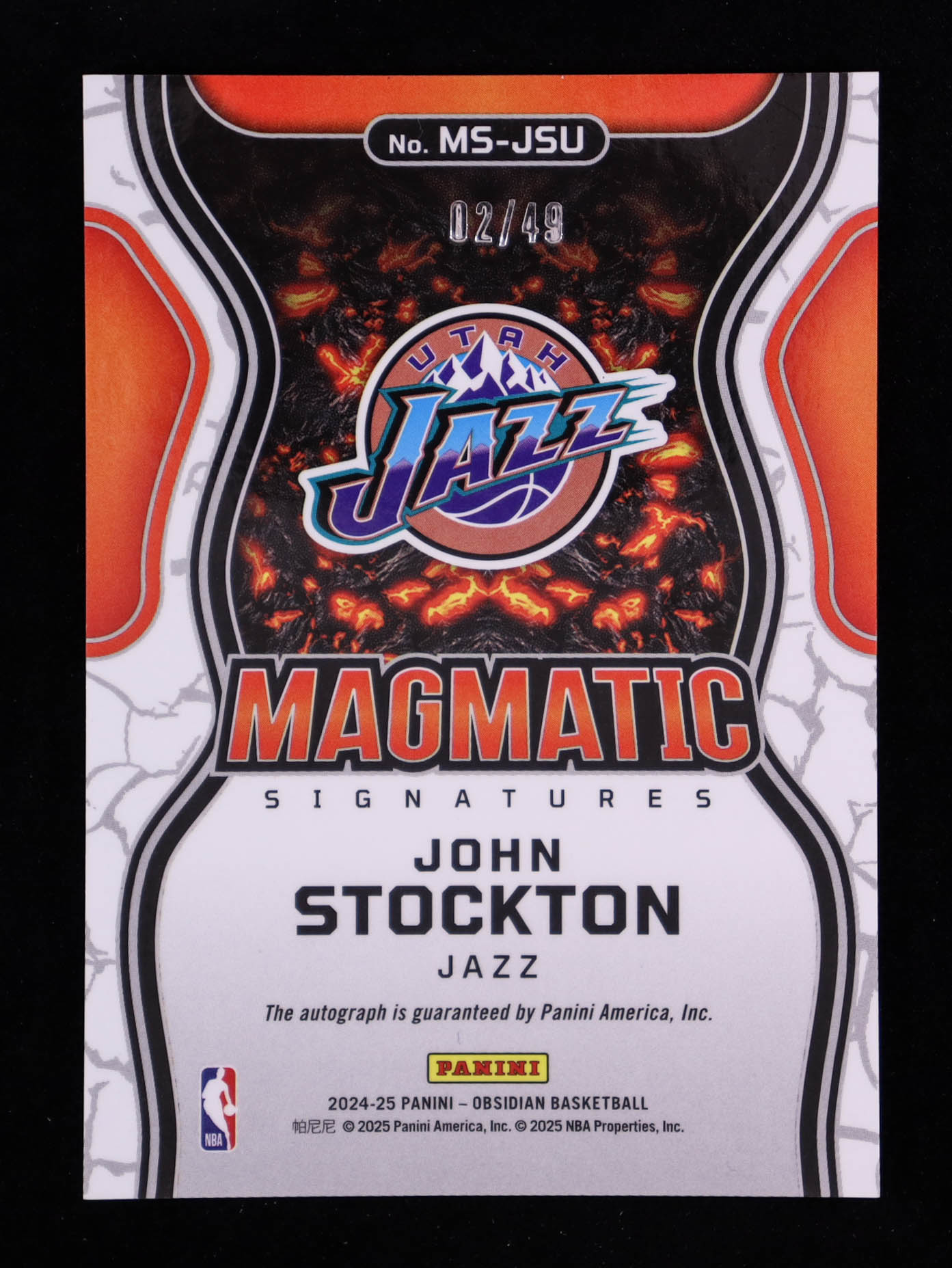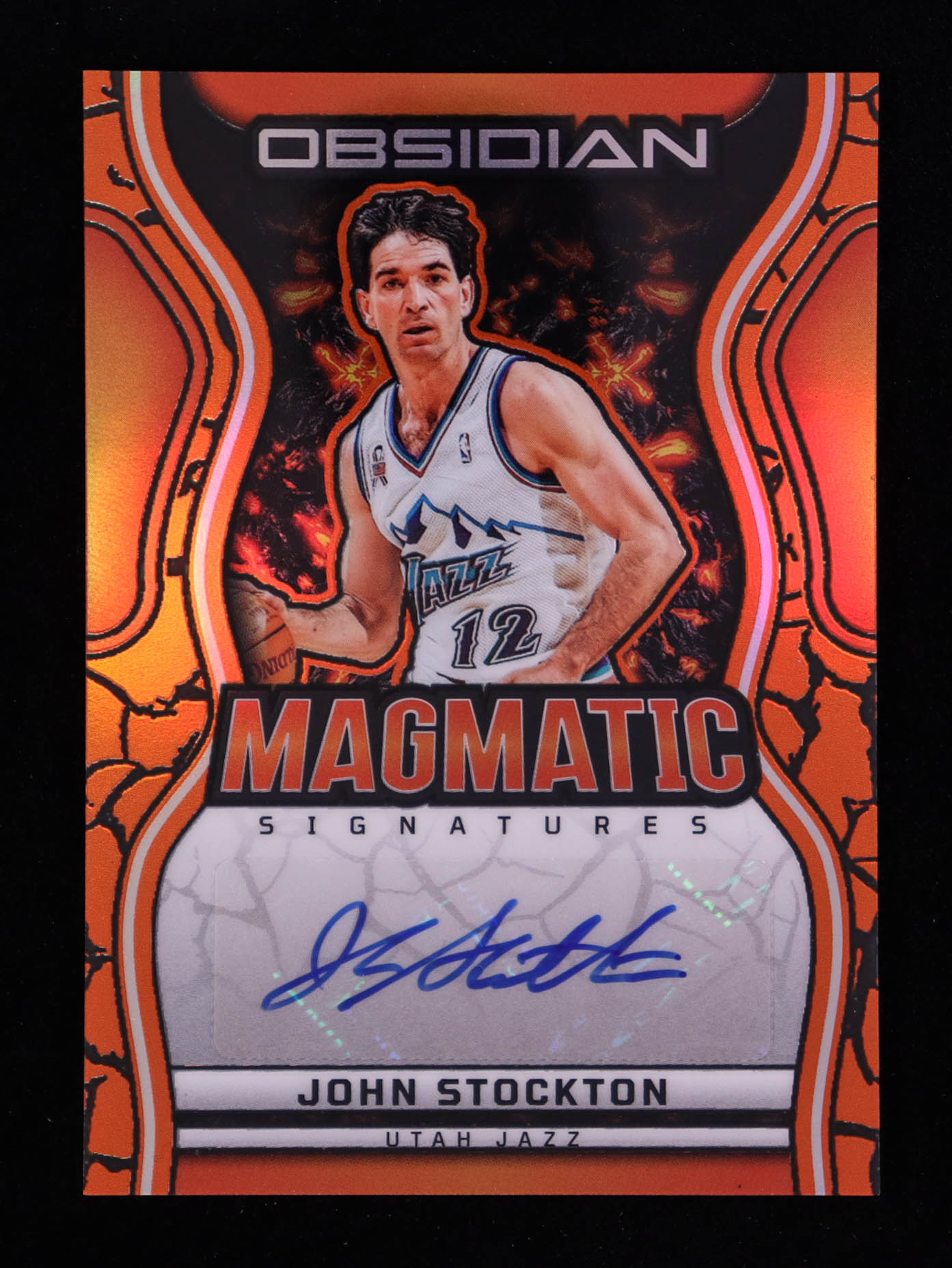 John Stockton 2024-25 Panini Obsidian Magmatic Signatures Electric Etch Orange Flood #17 #02/49