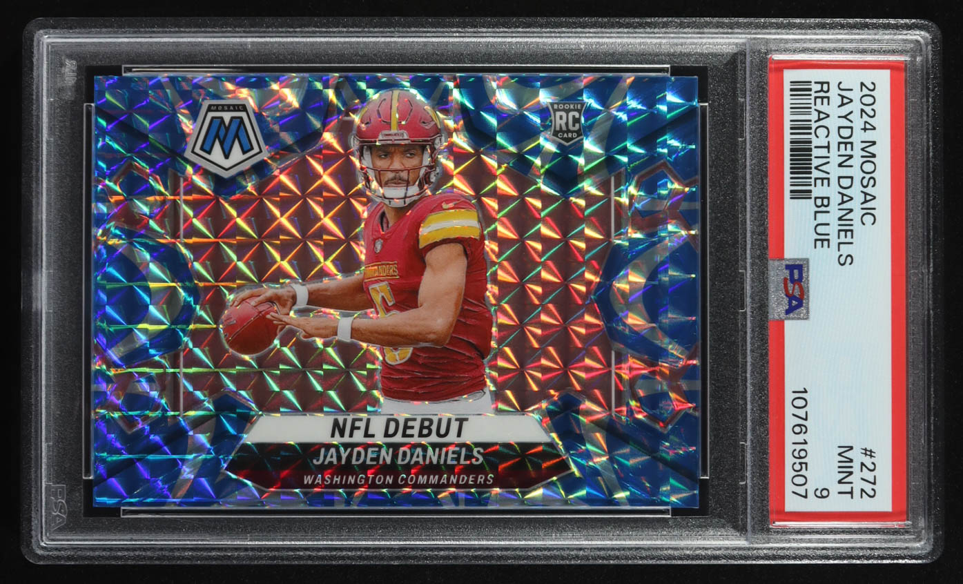 Jayden Daniels 2024 Panini Mosaic Reactive Blue NFL Debut #272 RC (PSA 9)