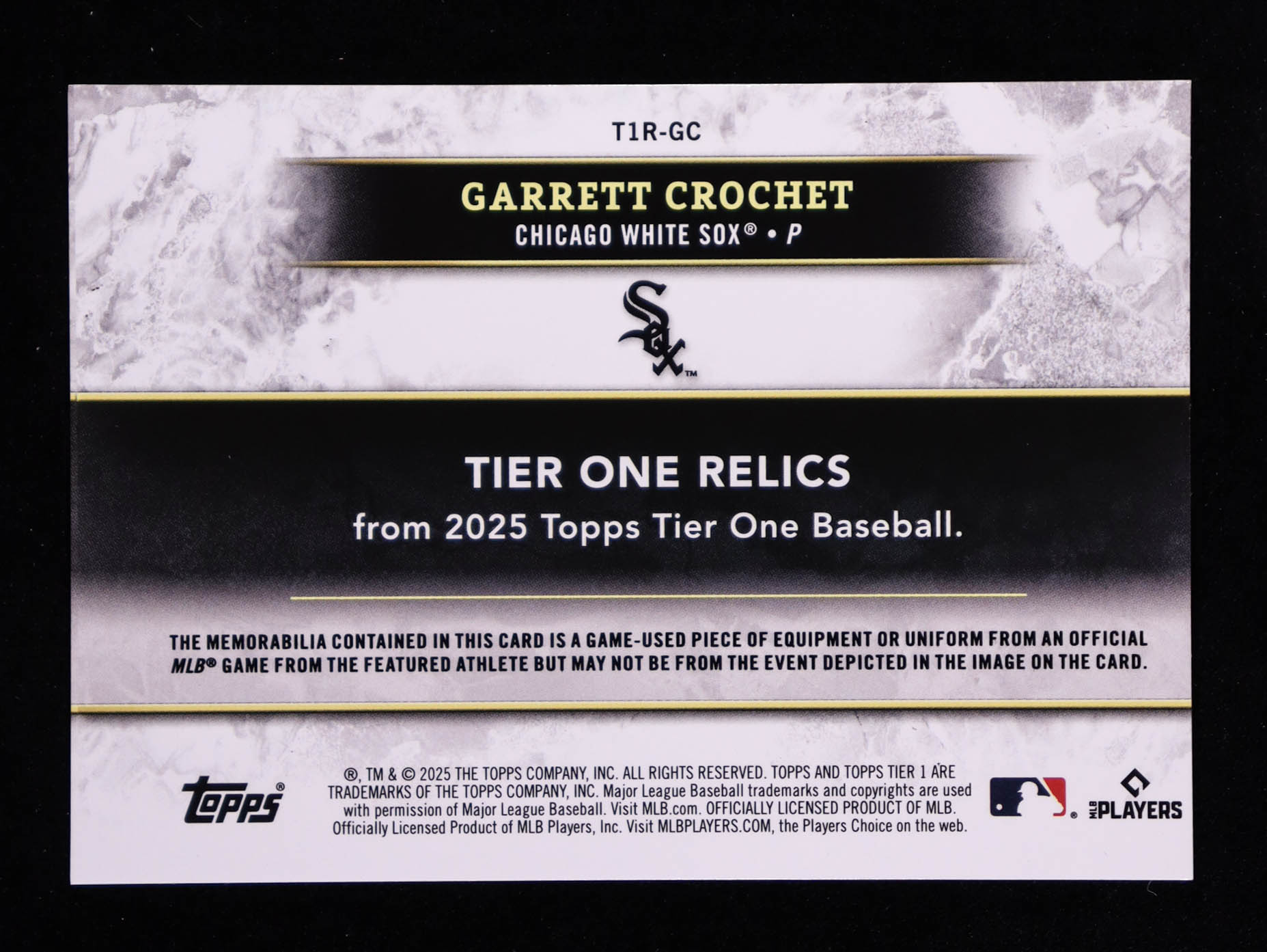 Garrett Crochet 2025 Topps Tier One Relics #T1RGC #031/199
