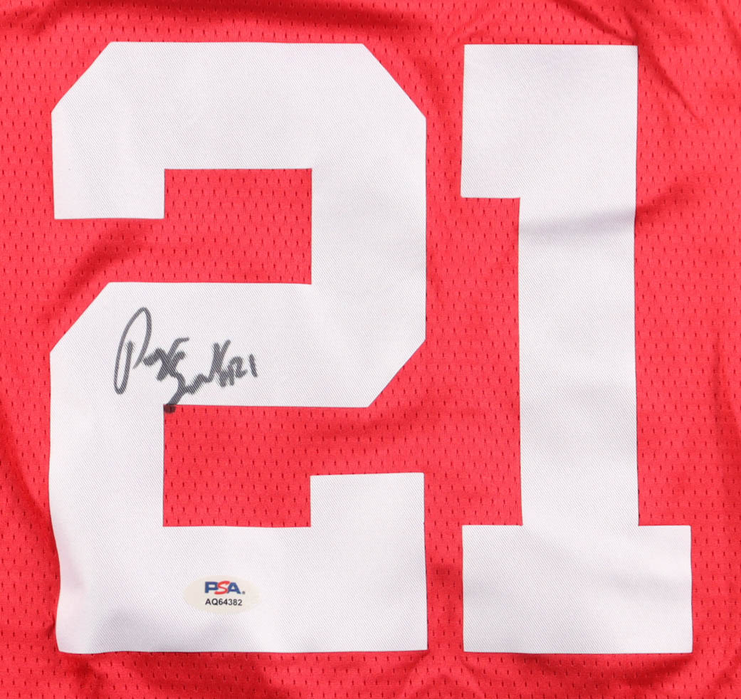 Adidas authentic jersey with everything pressed on, size L. Hand-signed by Pryce Sandfort.
