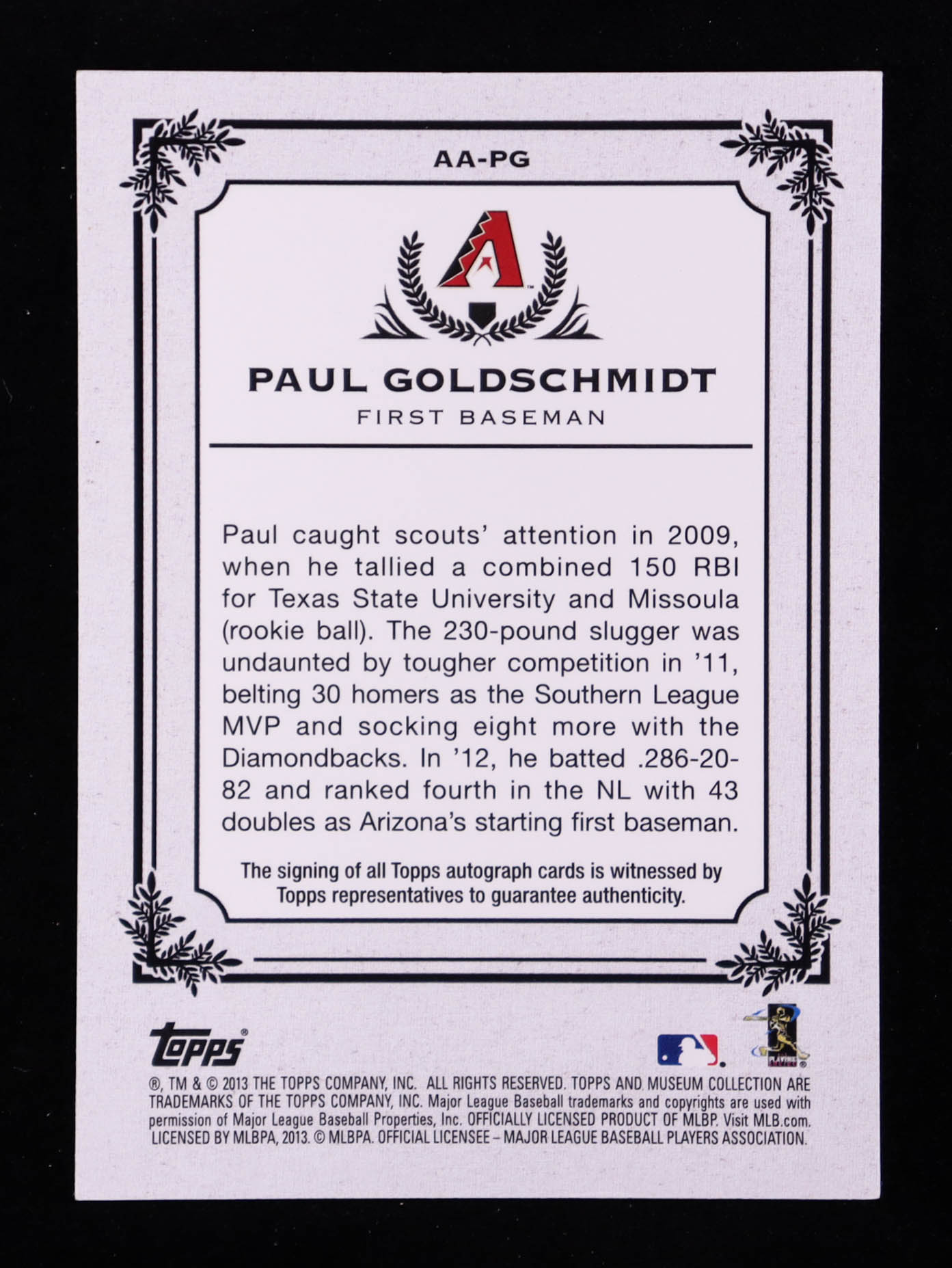 Paul Goldschmidt 2013 Topps Museum Collection Autographs #PG #288/399