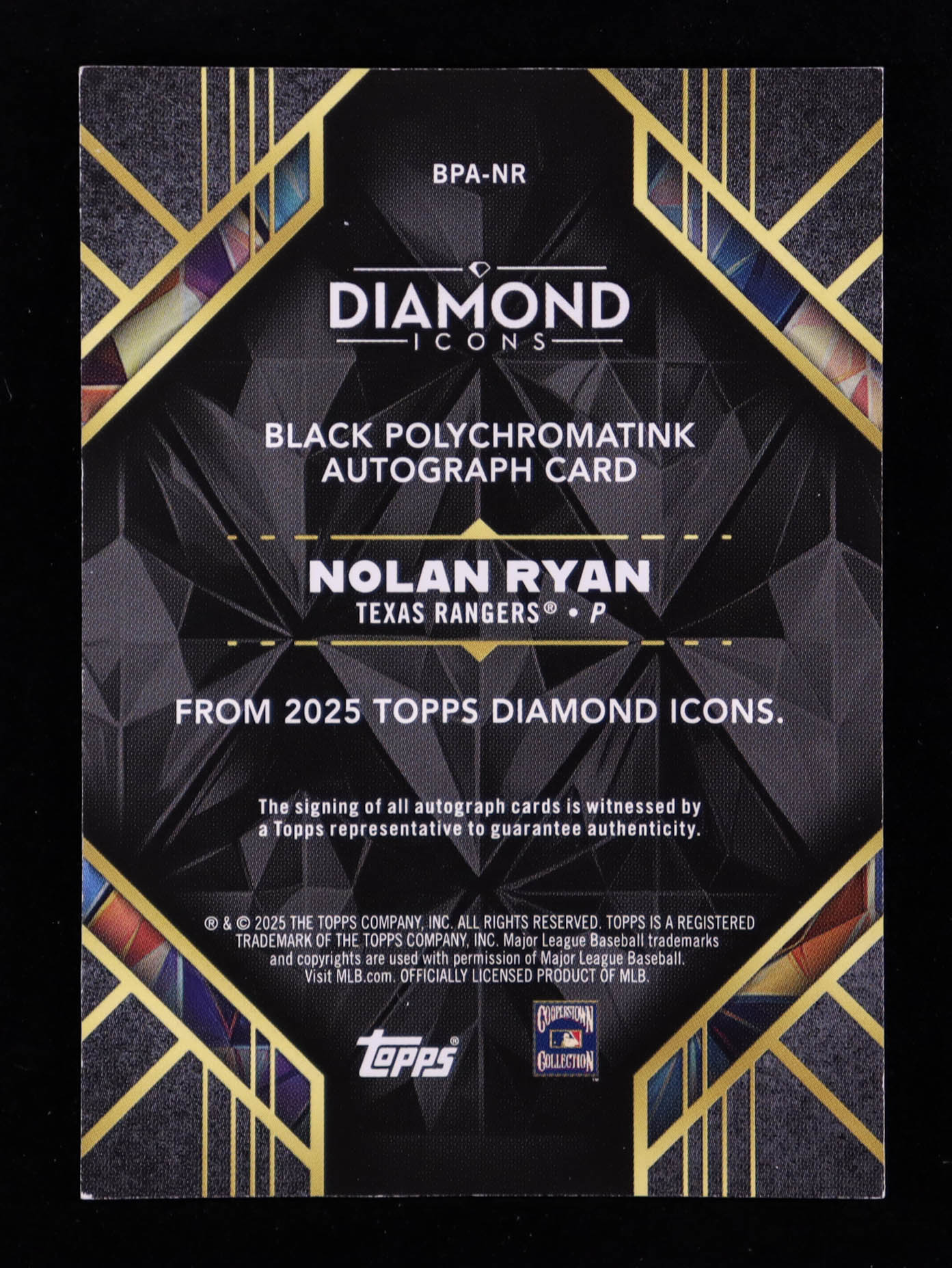 Nolan Ryan 2025 Topps Diamond Icons Black PolychromatINK Autographs Black Silver Ink #BPANR #03/10