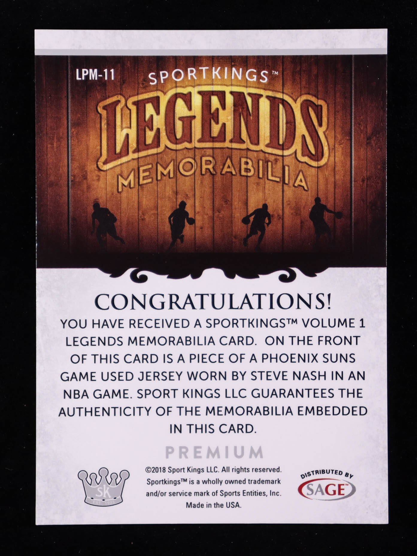 Steve Nash 2018 Sportkings Legends Premium Memorabilia Silver #LPM11 #03/25