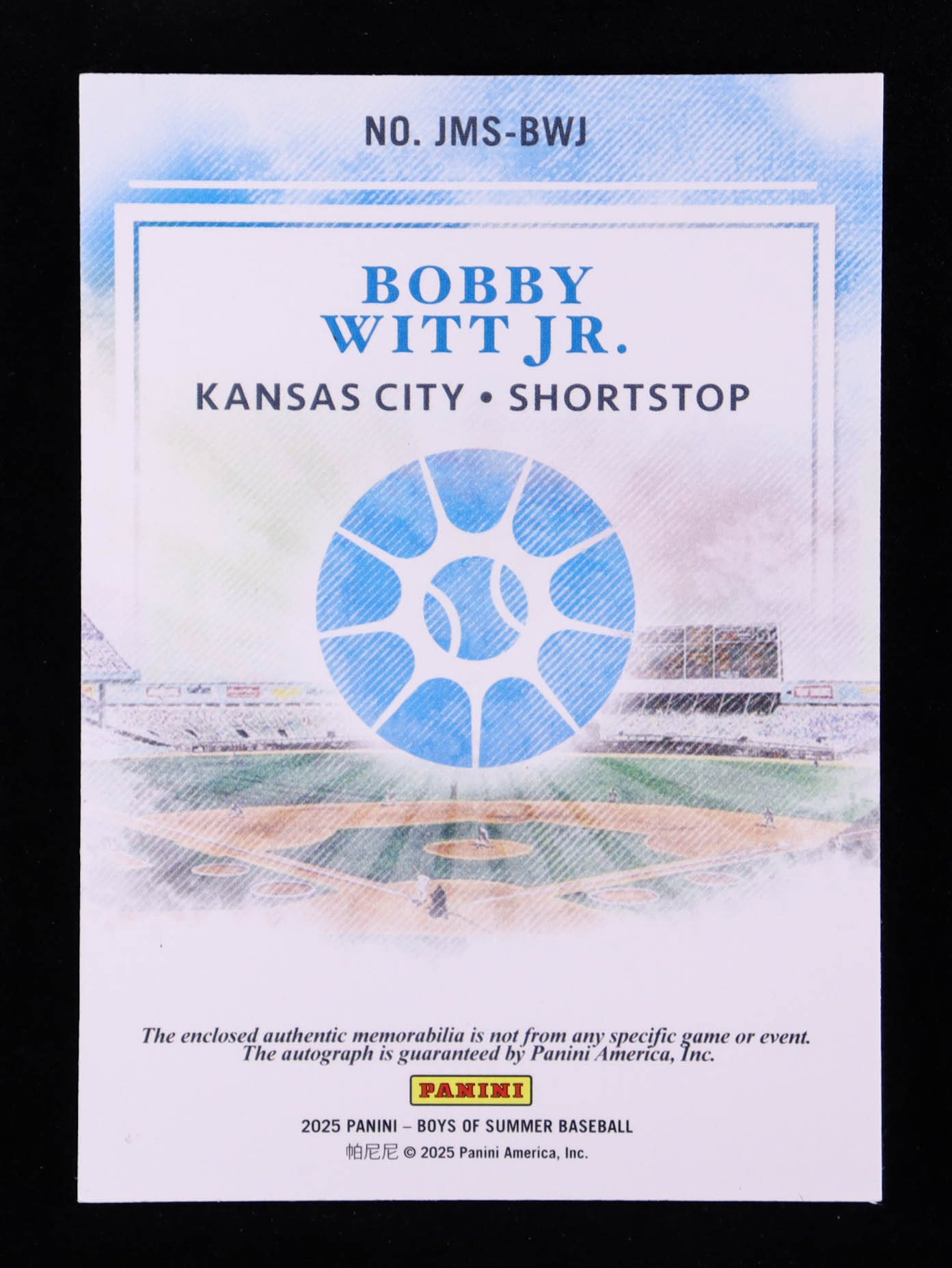 Bobby Witt Jr. 2025 Panini Boys of Summer Jumbo Material Signatures Silver #BWJ #24/25