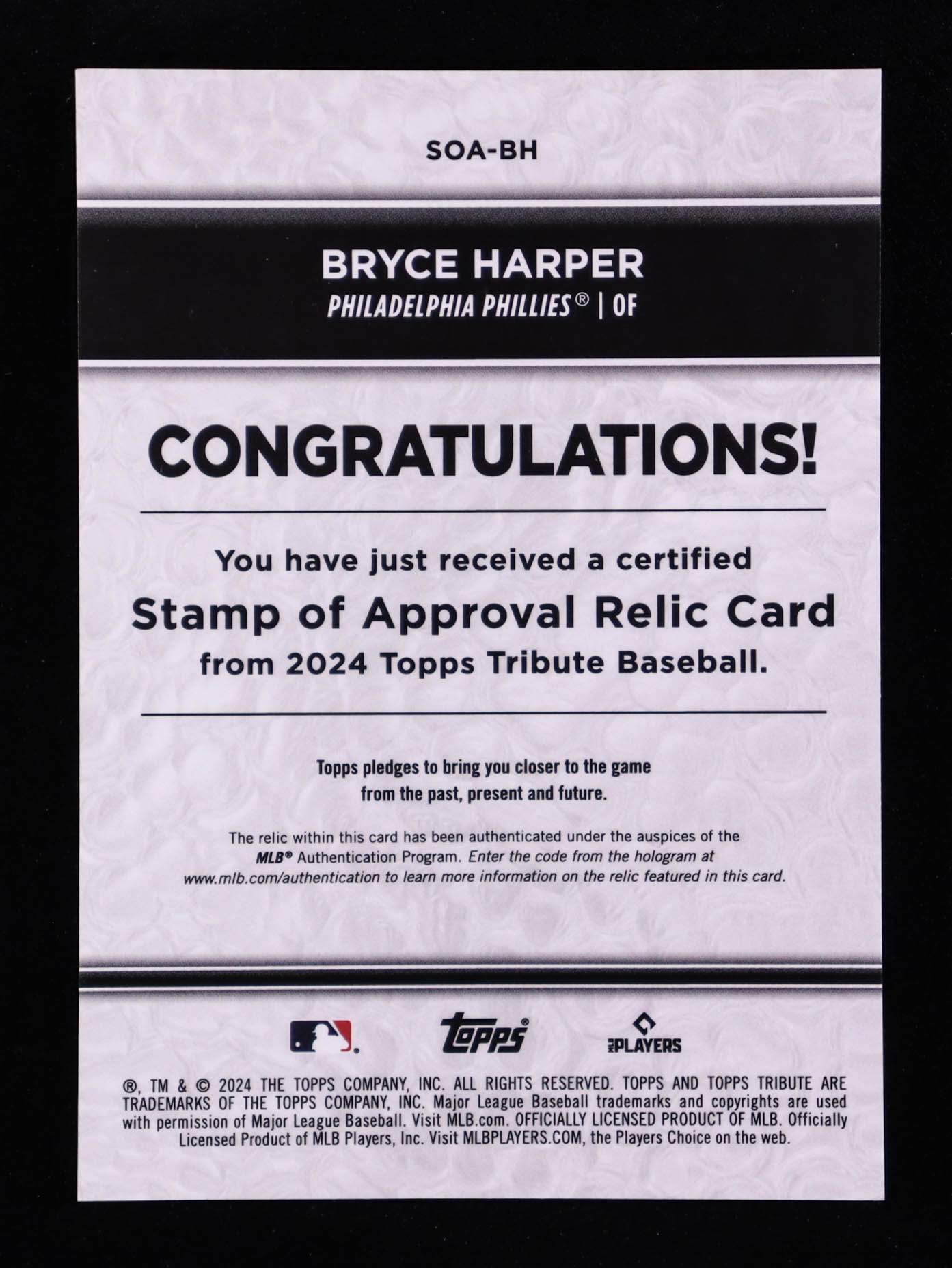 Bryce Harper 2024 Topps Tribute Stamp of Approval Relics Green #SOABH #27/99