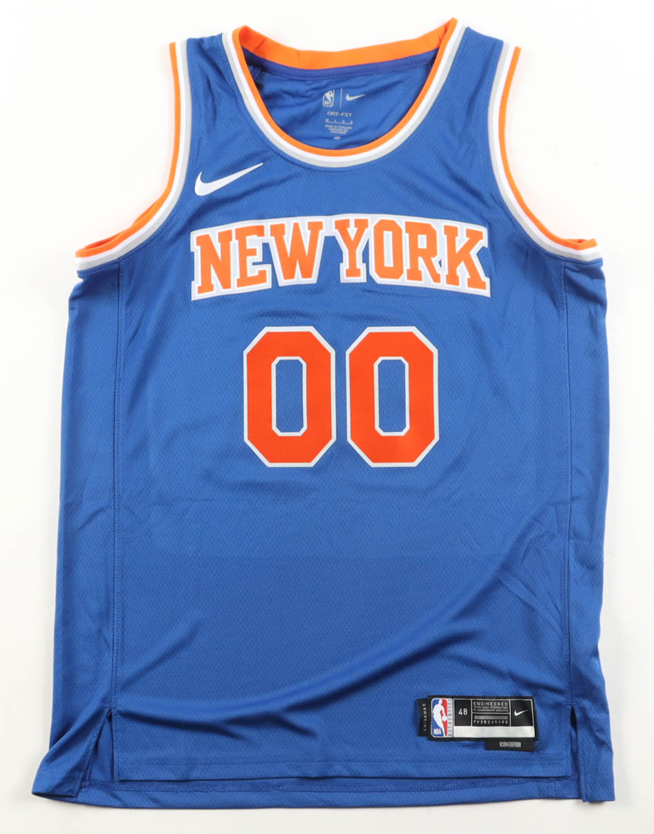 Nike authentic jersey with everything pressed on, size 48. Hand-signed by Jordan Clarkson (New York Knicks).