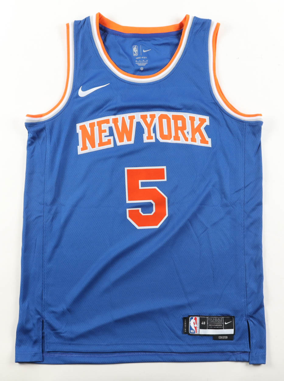 Nike authentic jersey with everything pressed on, size 48. Hand-signed by Jose Alvarado (New York Knicks).