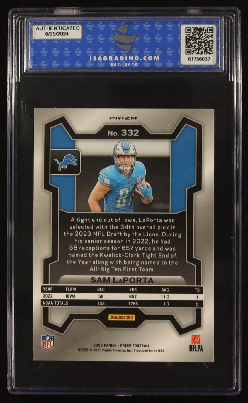 Sam Laporta 2023 Panini Lazer Prizm #332 RC (ISA 10)