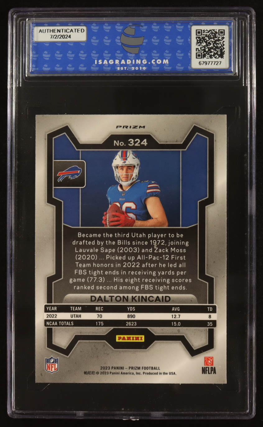 Dalton Kincaid 2023 Panini Rookie Variation Silver Prizm #324 RC (ISA 10)