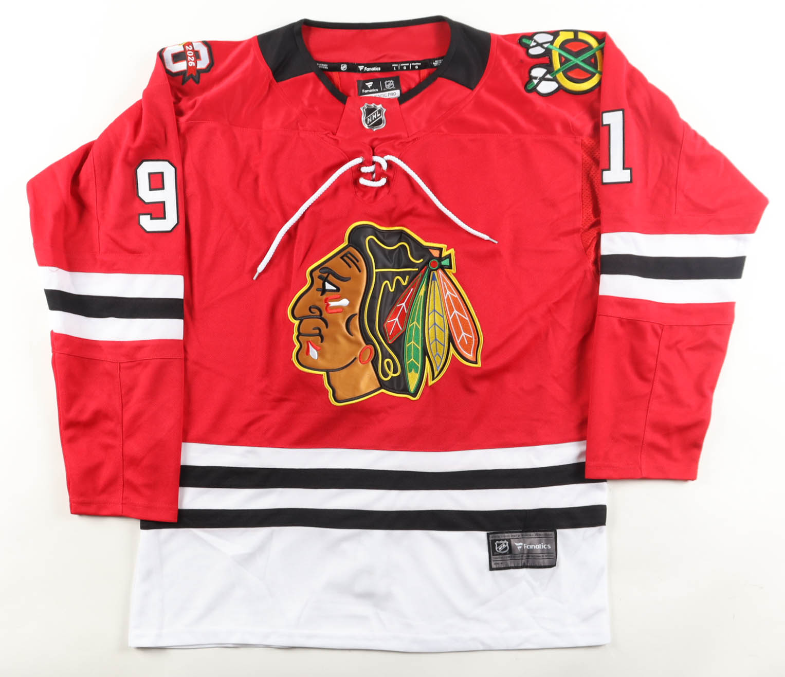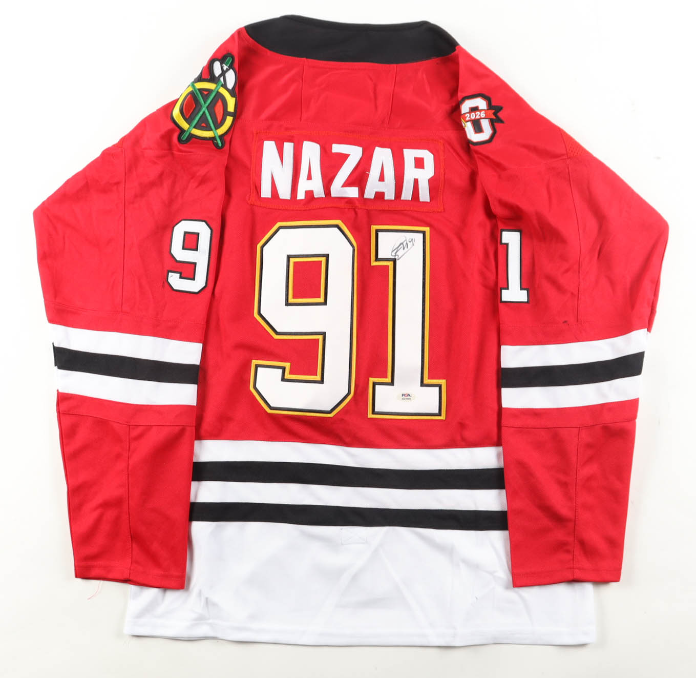 Fanatics authentic jersey with everything sewn, size L. Hand-signed by Frank Nazar (Chicago Blackhawks). Please note, there is a stain on the right sleeve.