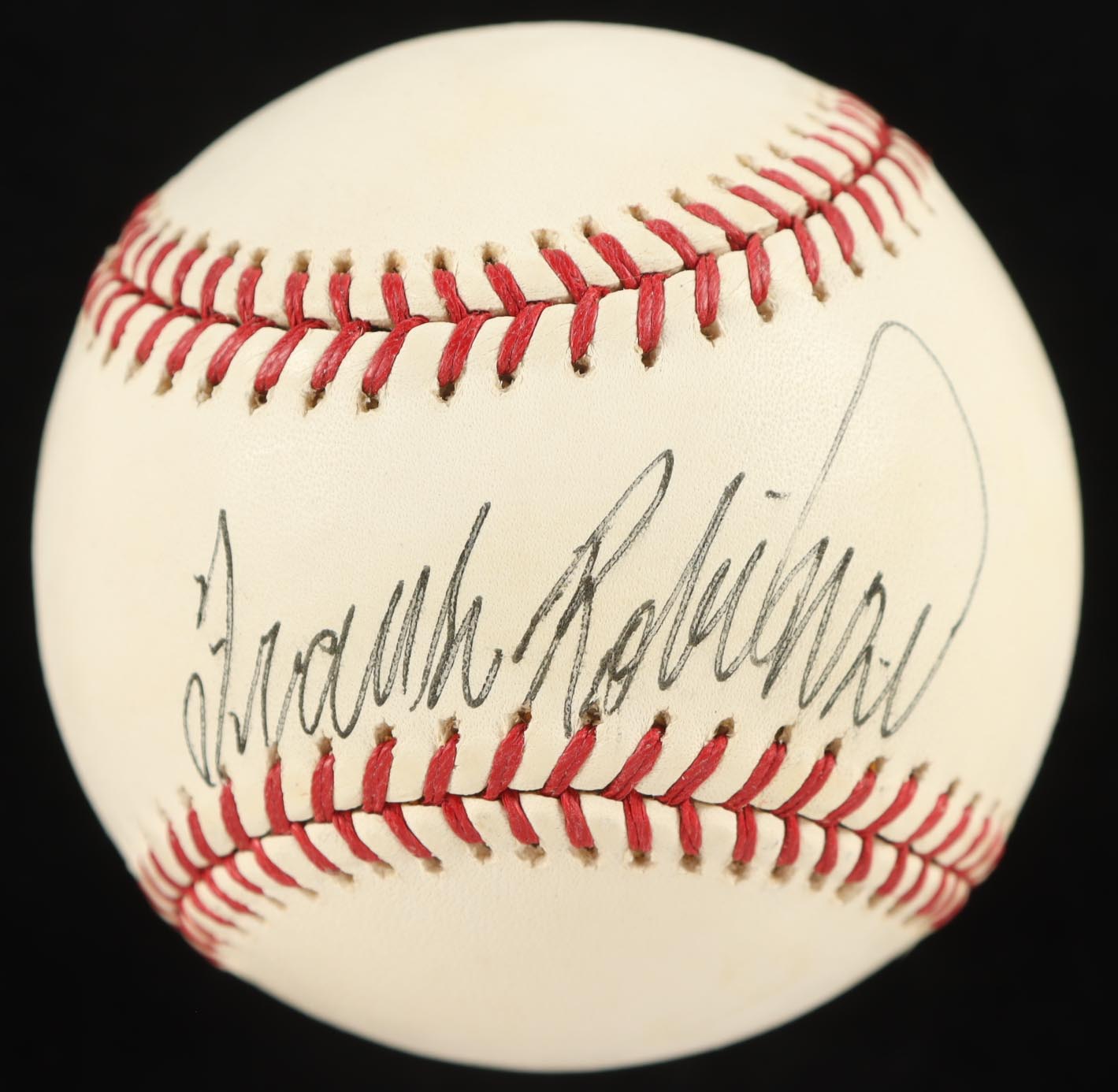 Rawlings Official Major League Baseball has been hand-signed by Frank Robinson (D. 2019, Baltimore Orioles, HOF).