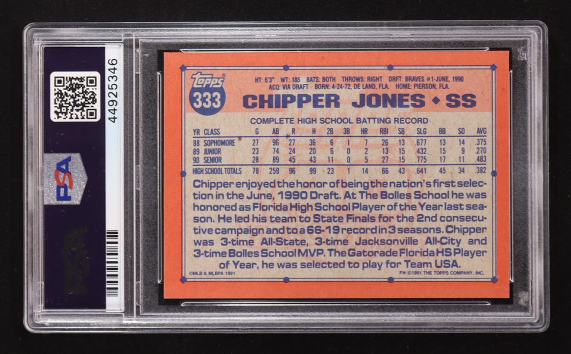 Chipper Jones Signed 1991 Topps #333 RC (PSA)