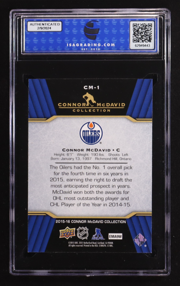 Connor McDavid 2015-16 Upper Deck Connor McDavid Collection #CM-1 RC (ISA 9)