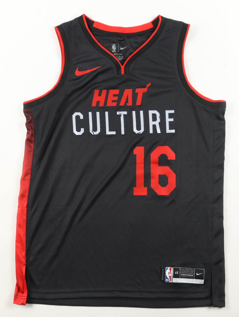 Nike authentic jersey with everything pressed on, size 48. Hand-signed by Caleb Martin (Miami Heat).