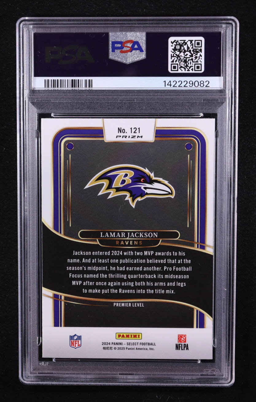 Lamar Jackson 2024 Panini Select Premier Level Black & Orange Shock #121 (PSA 9)