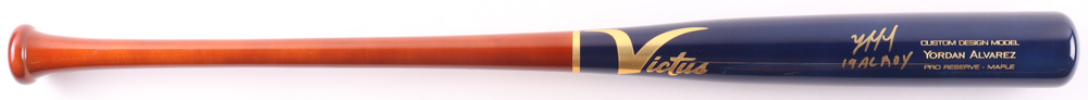 Victus player model baseball bat has been hand-signed and inscribed by Yordan Alvarez (Houston Astros).