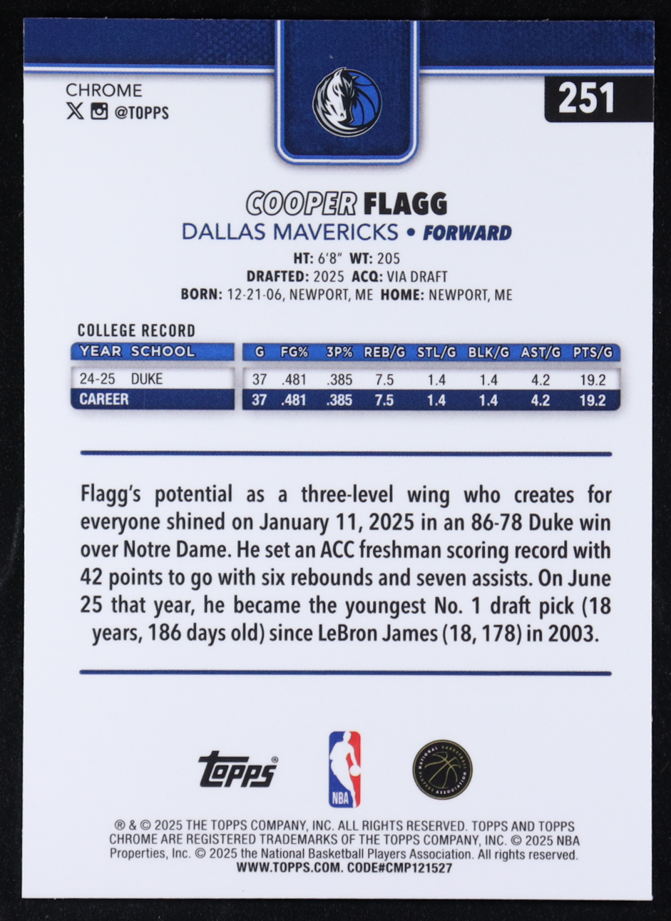Cooper Flagg 2025-26 Topps Chrome #251 RC