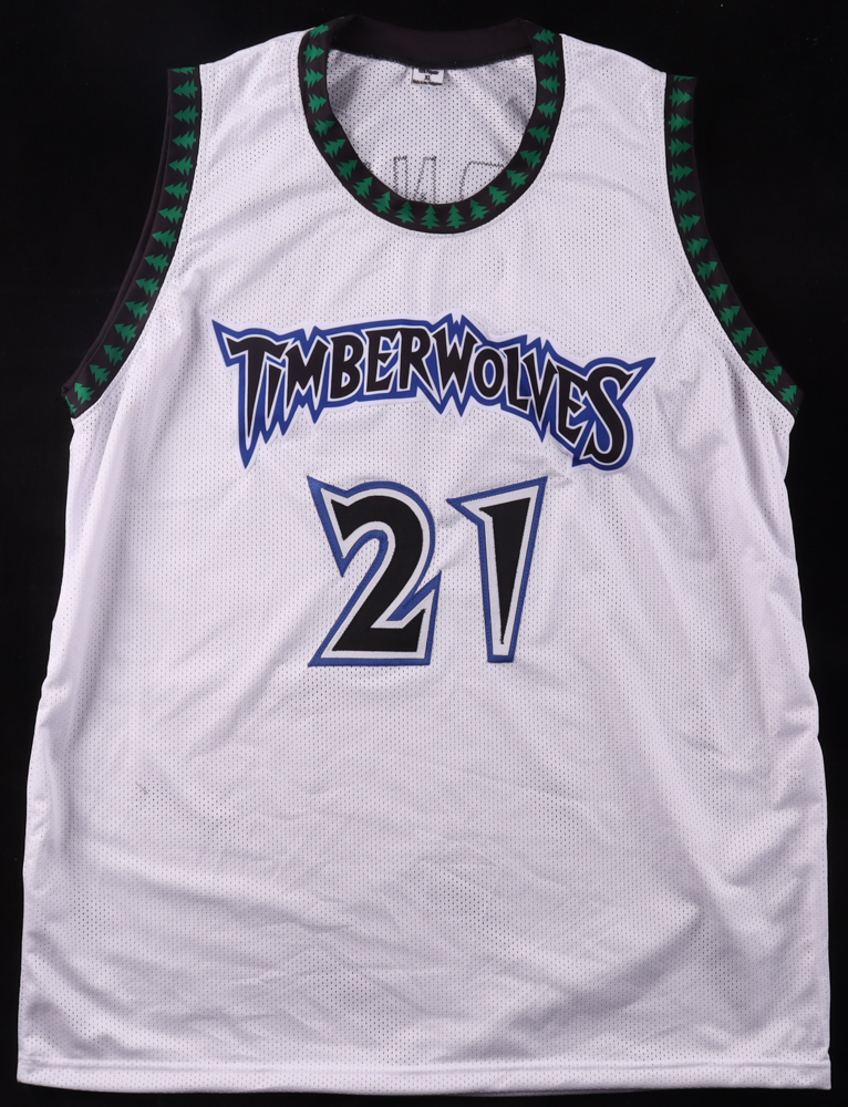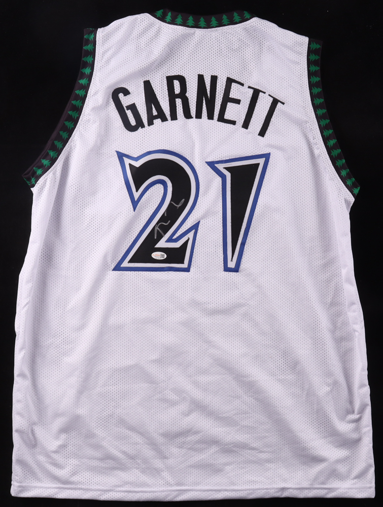 Custom jersey with everything sewn on, size XL. Hand-signed by Kevin Garnett (HOF).