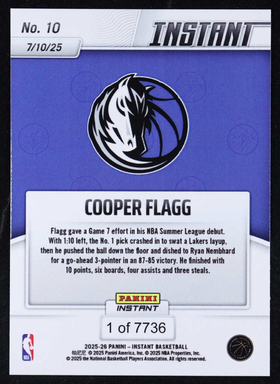 Cooper Flagg 2025-26 Panini Instant #10 RC #1/7736