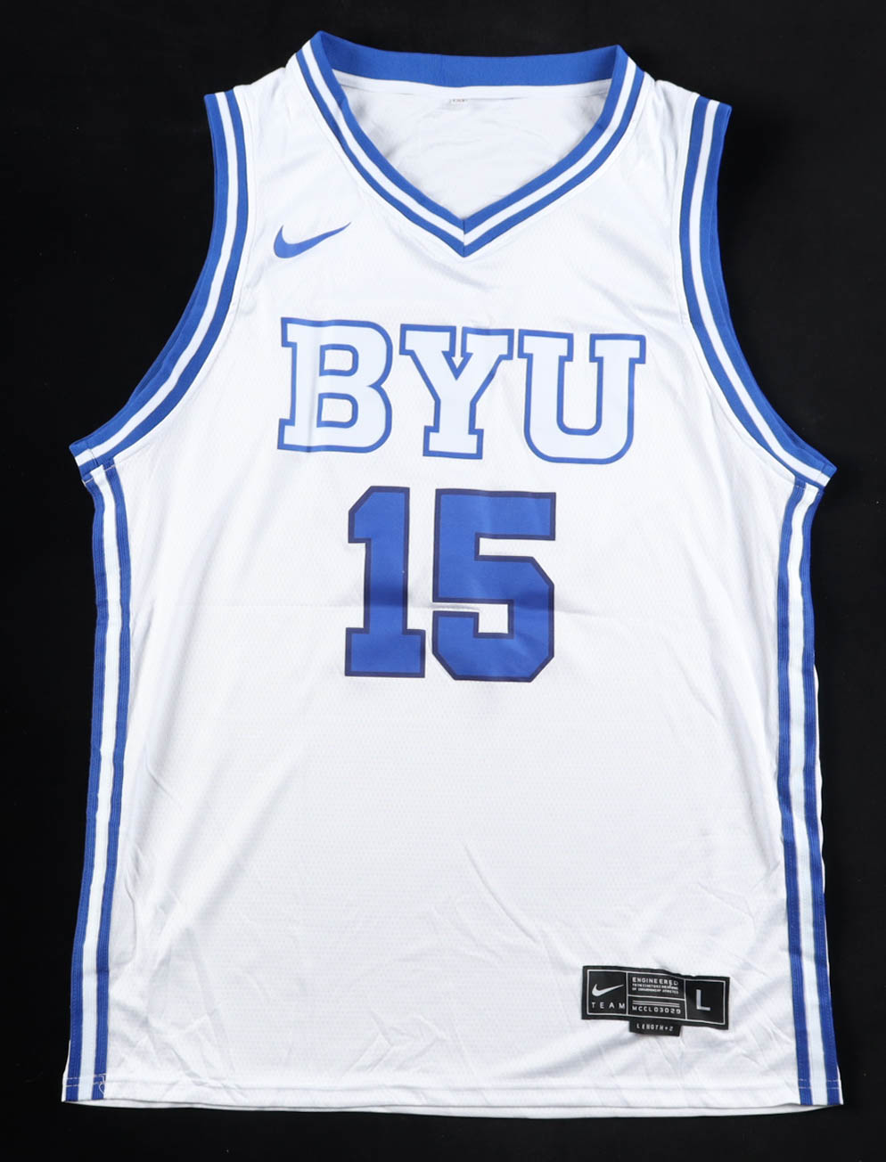 Nike jersey. Everything is pressed on, size L. Hand-signed by Richie Saunders (BYU Cougars).
