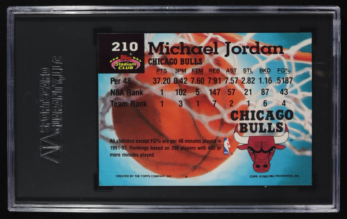 Michael Jordan 1992-93 Stadium Club MC #210 (SGC 7.5)