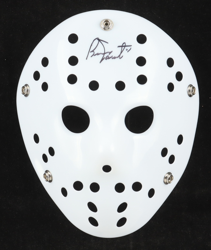 Full-Size Replica Goalie Mask has been hand-signed by Bernie Parent (Philadelphia Flyers, HOF).