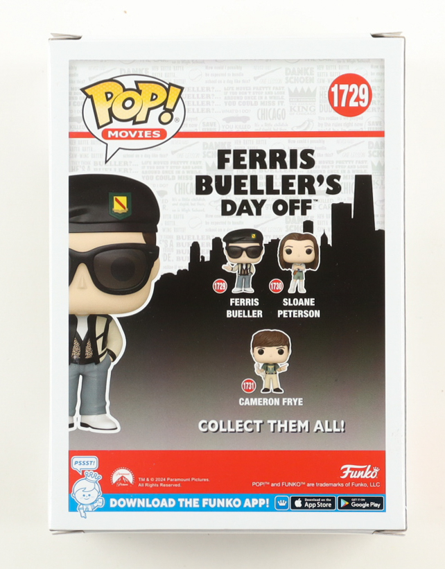 Funko Pop! figure measures approximately 4" tall and has been hand-signed on the packaging by Matthew Broderick. Please note, the window has been swapped.