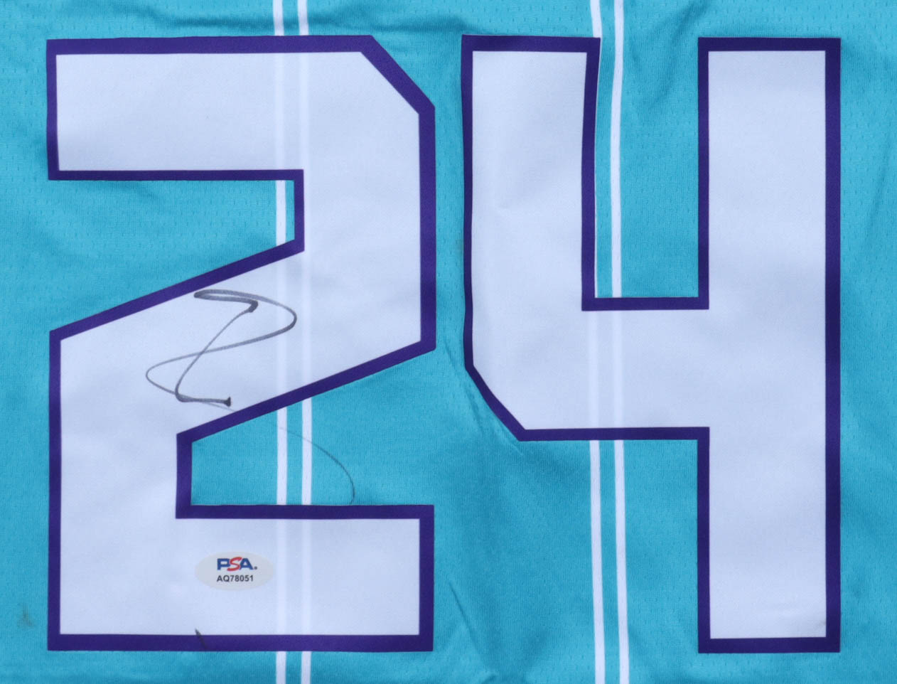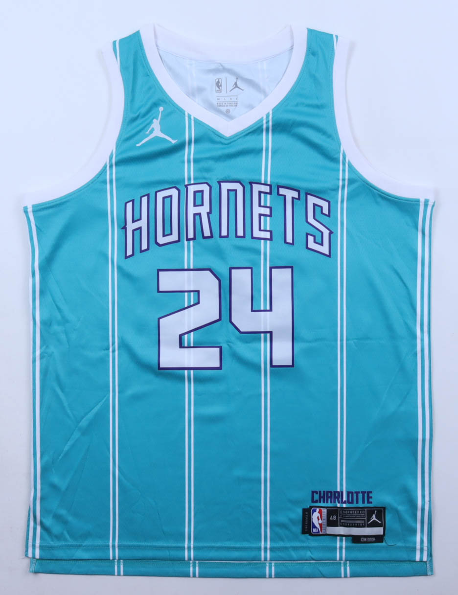 Jordan authentic jersey with everything pressed on, size 48. Hand-signed by Brandon Miller (Charlotte Hornets). Please note, there is a stain to the left of the reverse number.