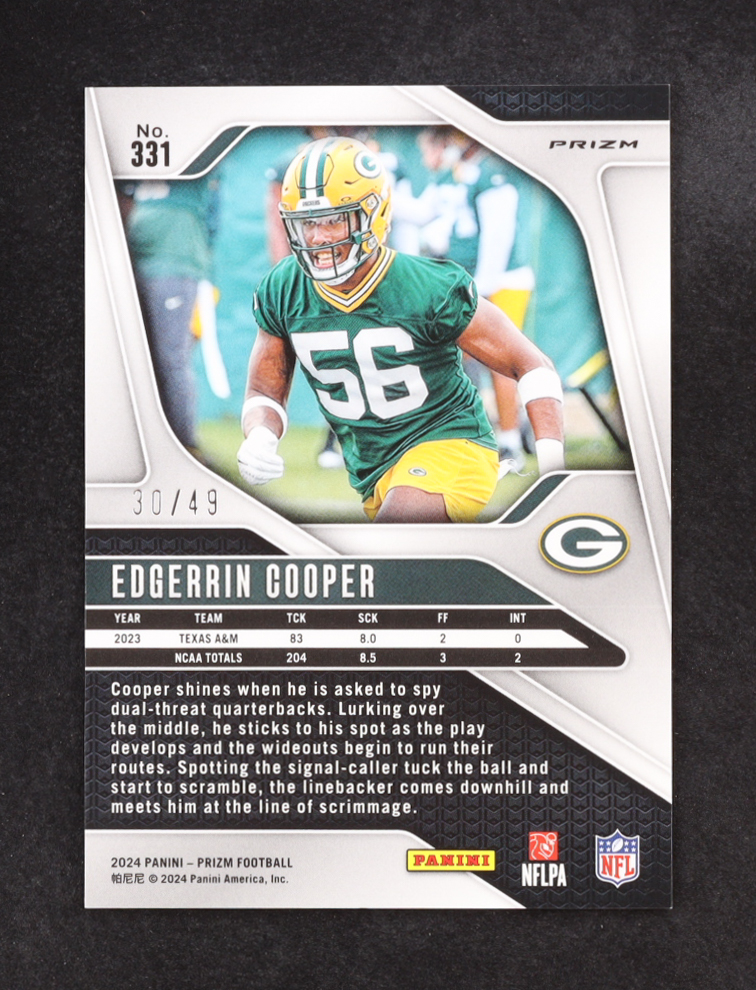 Edgerrin Cooper 2024 Panini Prizm Prizms No Huddle Purple #331 #30/49 RC