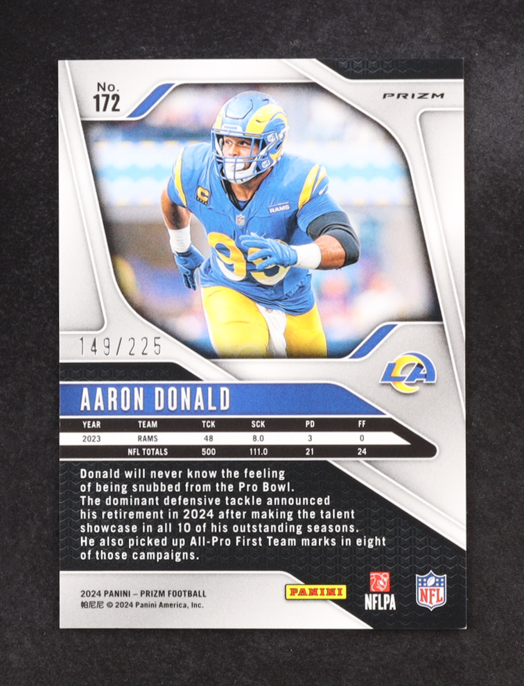 Aaron Donald 2024 Panini Prizm Prizms Purple Ice #172 #149/225