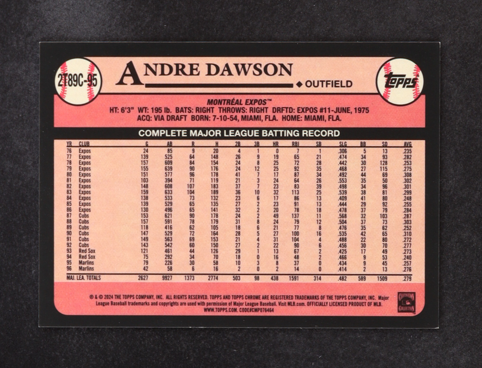 Andre Dawson 2024 Topps '89 Topps Silver Pack Chrome Series 2 Green Refractors #2T89C95 #21/99