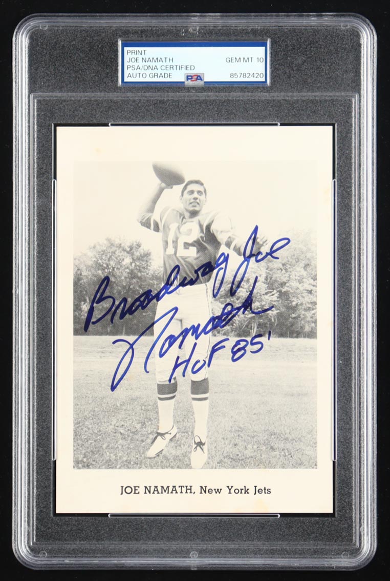 Joe Namath Signed 1965 Jets Team Issued Jumbo Card Inscribed "HOF 85" & "Broadway" (PSA | Autograph Graded 10)