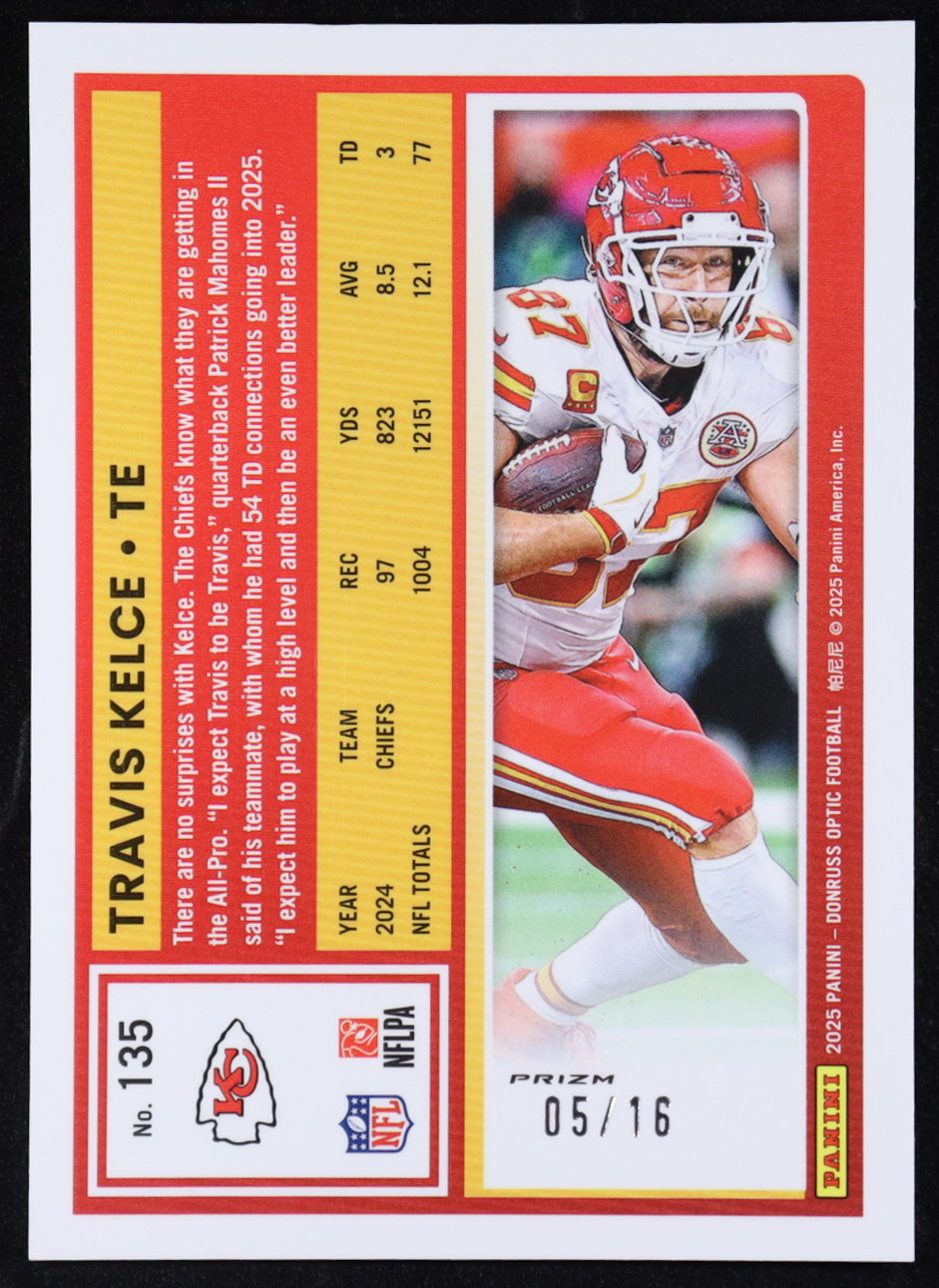 Travis Kelce 2025 Donruss Optic Footballs #135 #05/16
