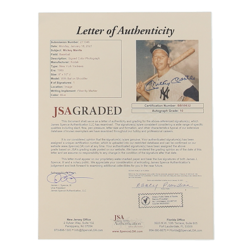 Mickey Mantle Signed Yankees 8x10 Photo (JSA | Autograph Grade 10)