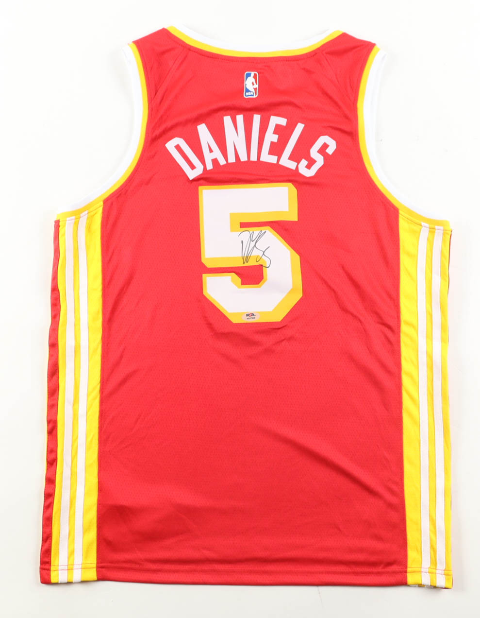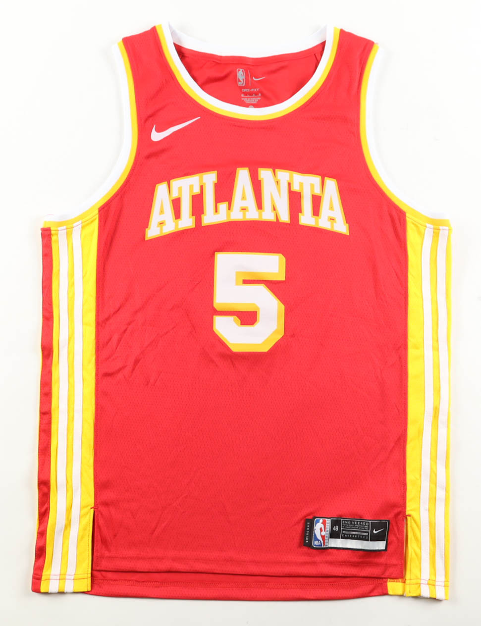 Nike jersey. Everything is pressed on, size 48. Hand-signed by Dyson Daniels (Atlanta Hawks).