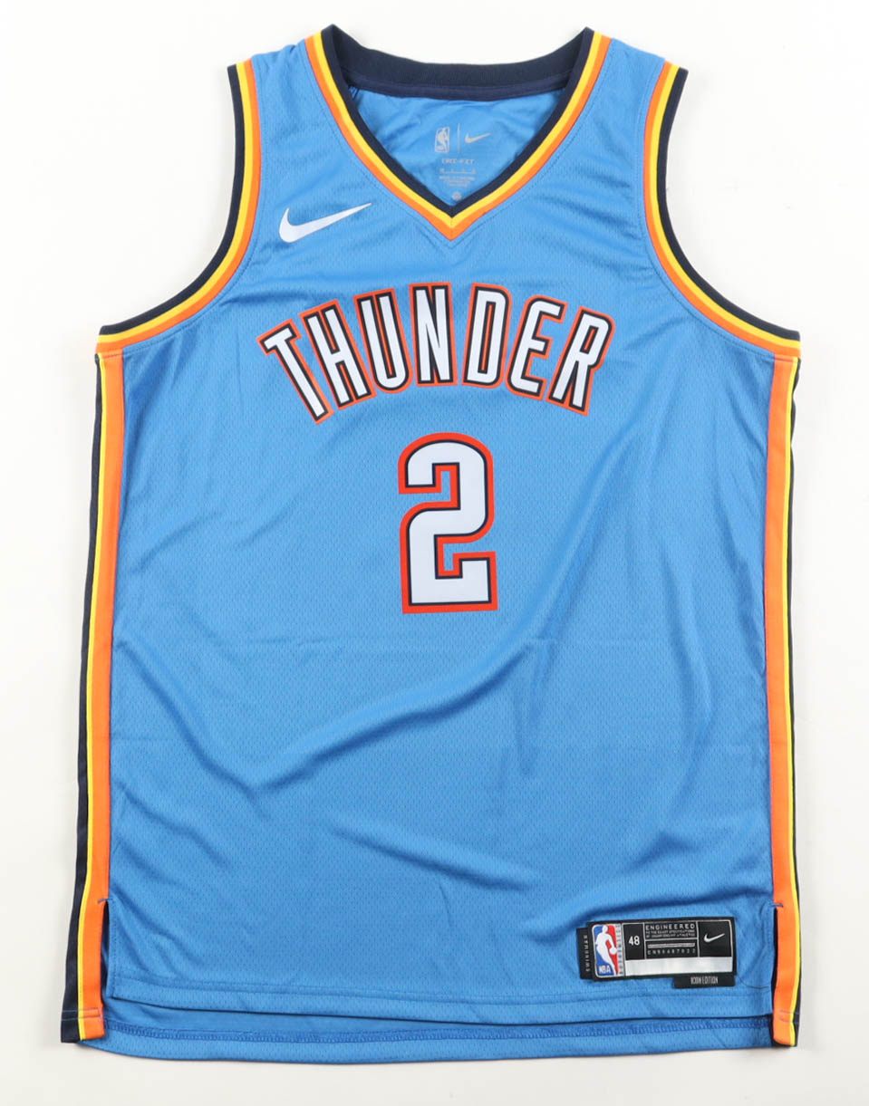 Nike authentic jersey with everything pressed on, size 48. Hand-signed by Shai Gilgeous-Alexander (Oklahoma City Thunder).