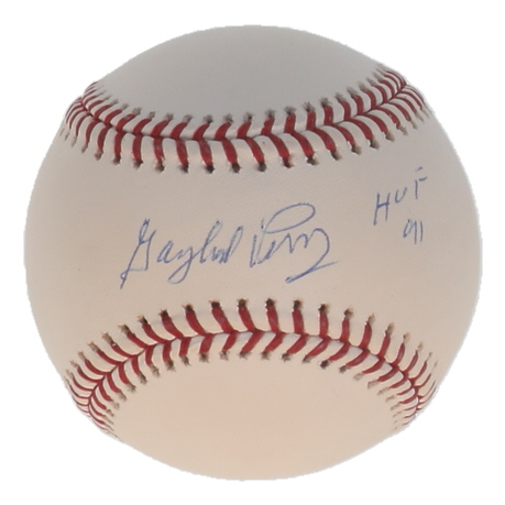 Rawlings Official Major League baseball. Hand-signed and inscribed by Gaylord Perry (D. 2022, Cleveland Indians, HOF).
