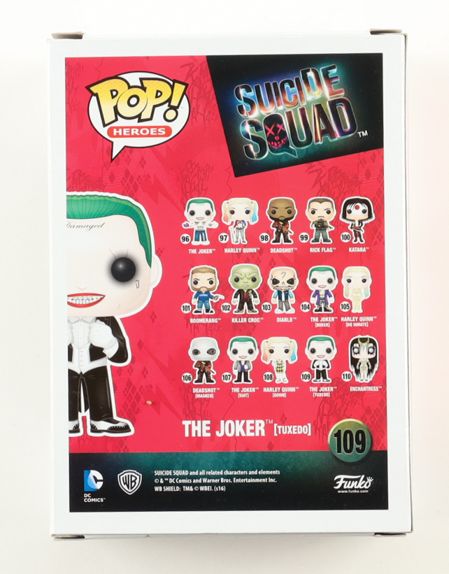 ![Jared Leto Signed "Suicide Squad" #109 The Joker [Tuxedo] Funko Pop! Vinyl Figure (ACOA) at PristineAuction.com Jared Leto Signed "Suicide Squad" #109 The Joker [Tuxedo] Funko Pop! Vinyl Figure (ACOA) at PristineAuction.com](https://images.pristineauction.com/418/4185981/1775677212-Jared-Leto-Signed-Suicide-Squad-109-The-Joker-Tuxedo-Funko-Pop-Vinyl-Figure-ACOA-PristineAuction.com.jpg)
