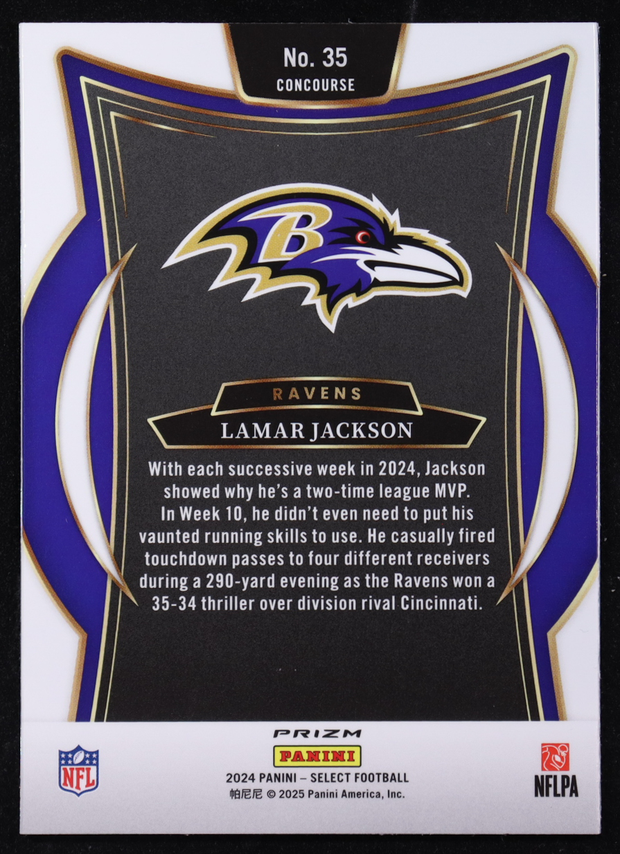 Lamar Jackson 2024 Panini Select Concourse Black & Green Prizm Shock #35